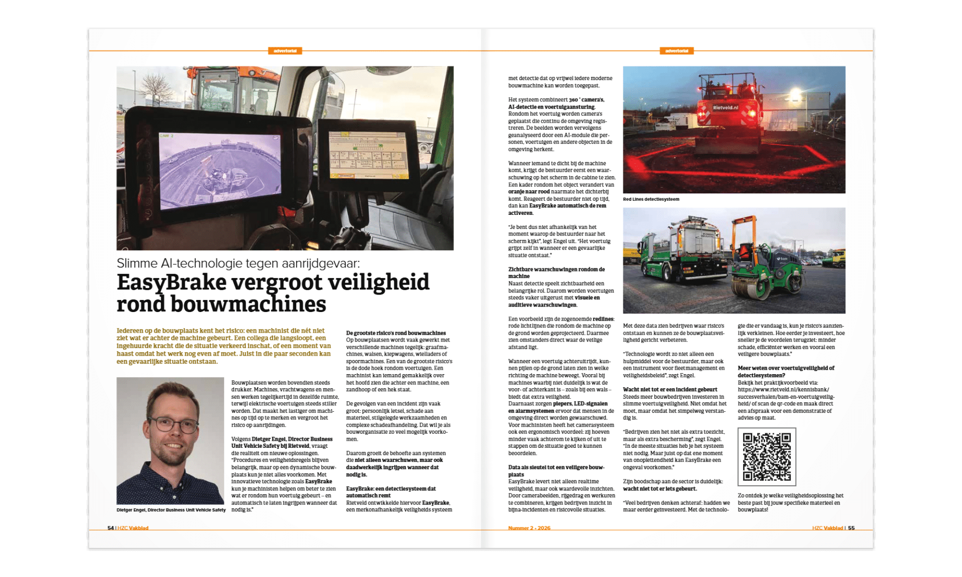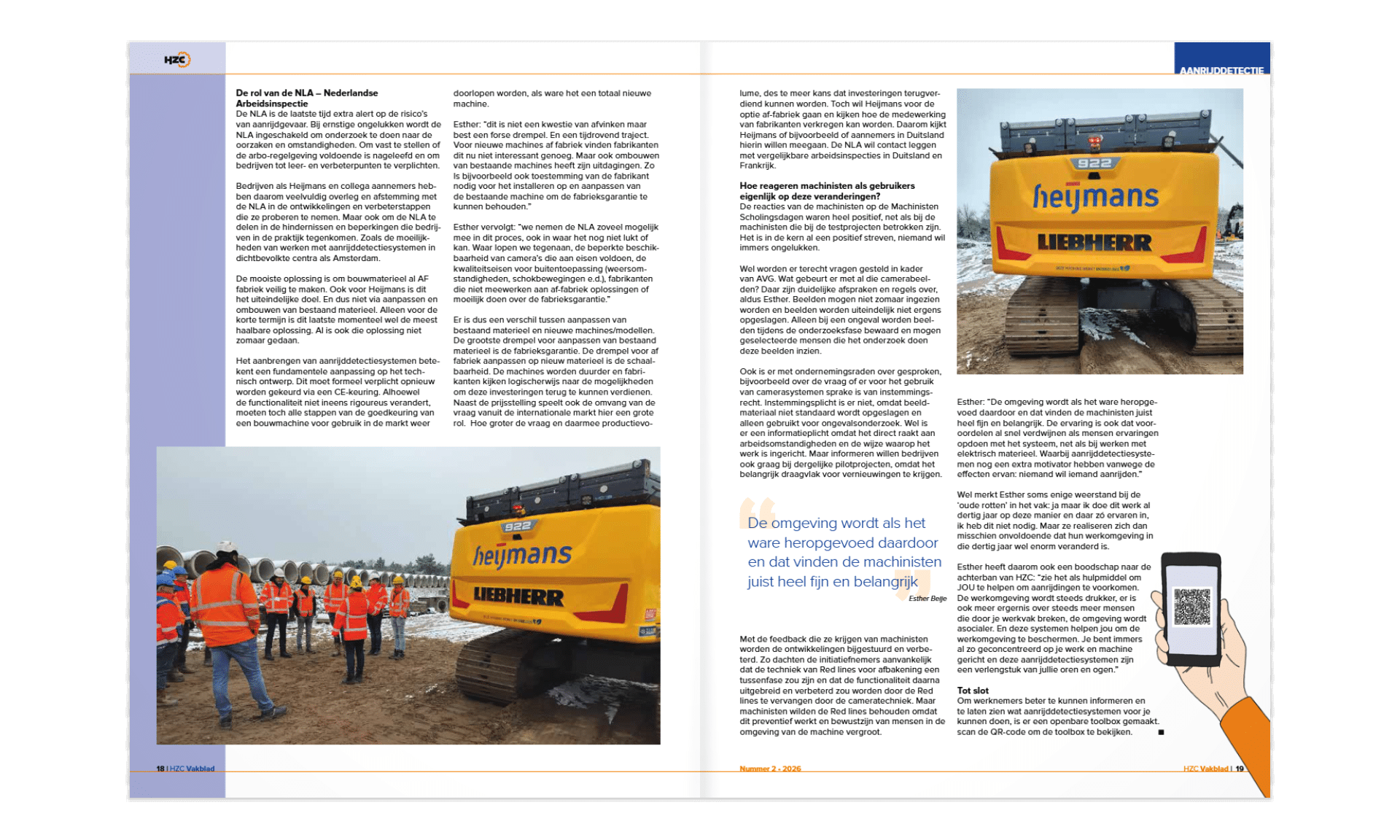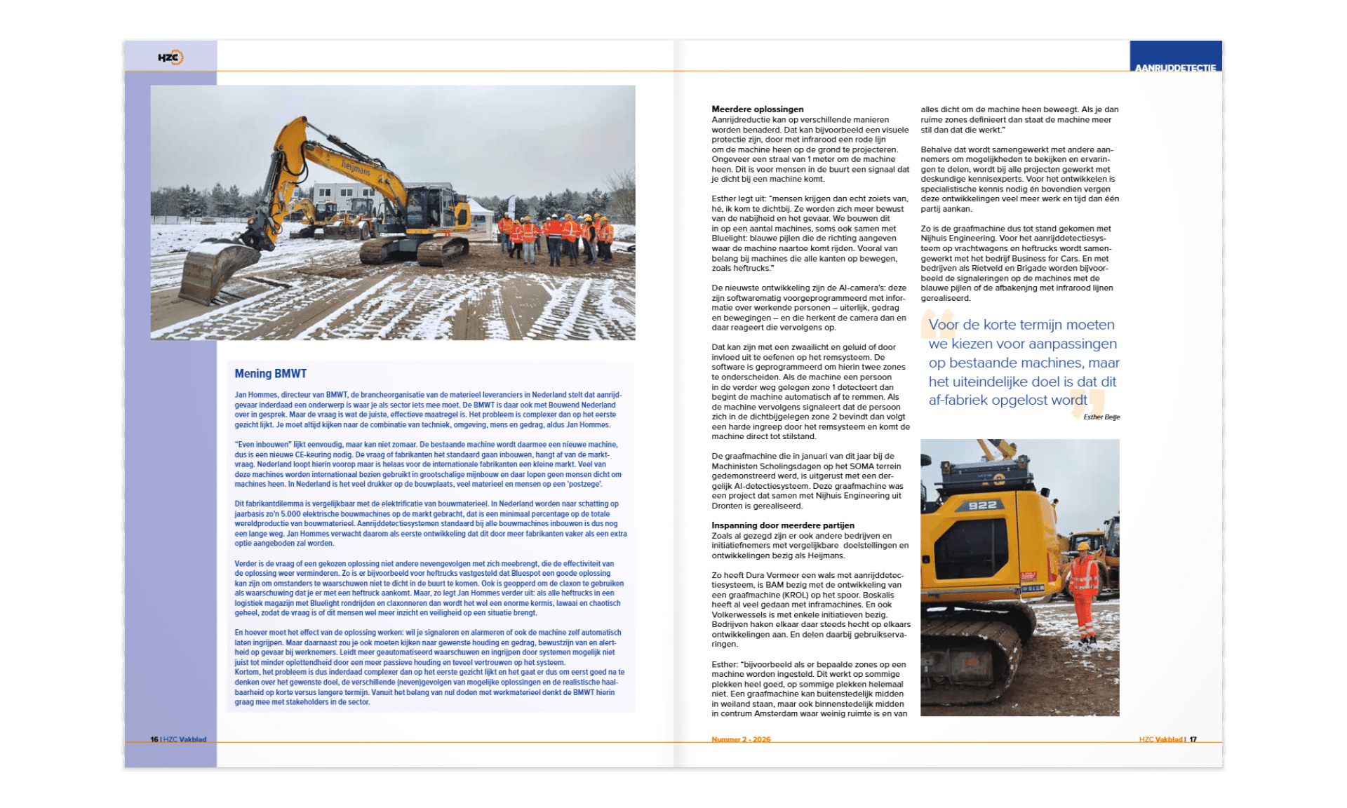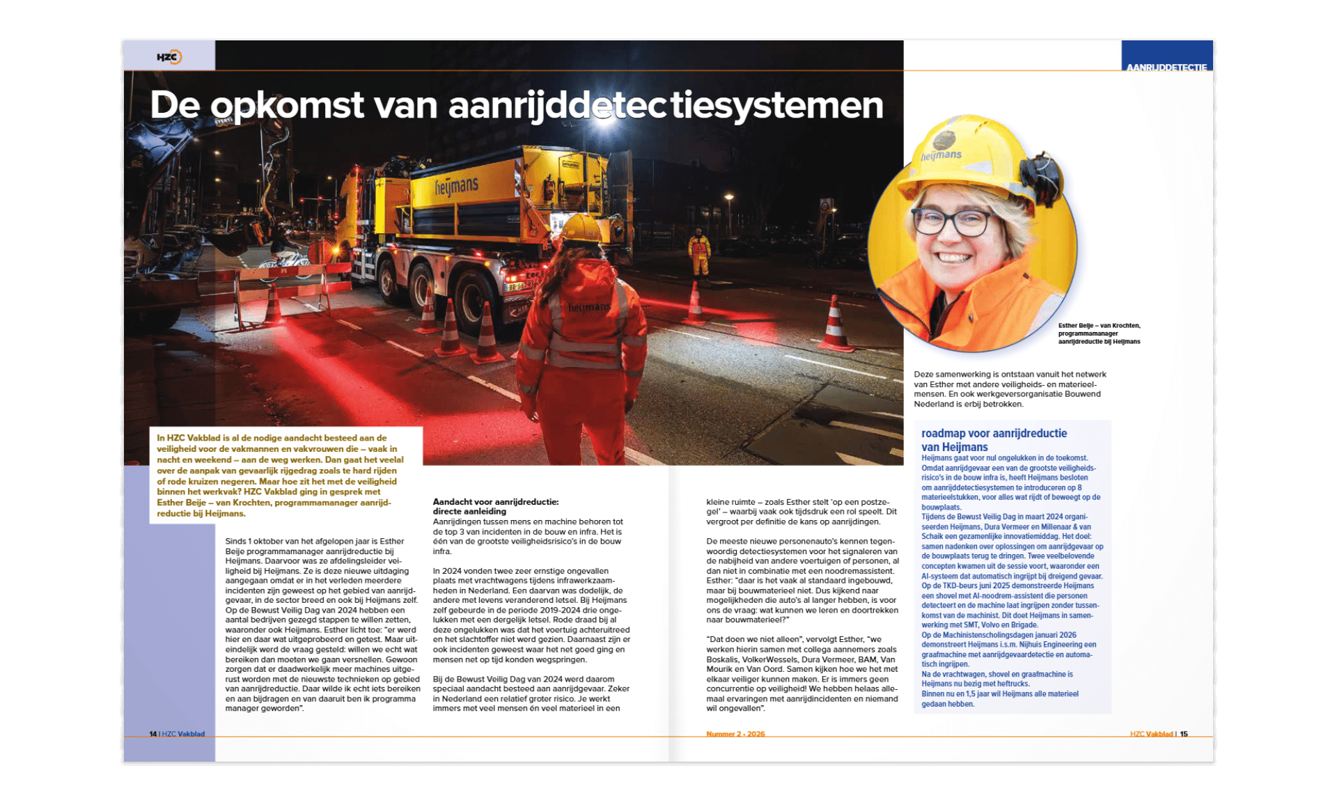 In de nieuwste editie van het HZC Vakblad staat een artikel over de samenwerking tussen Rietveld (pag. 54) en Heijmans (pag. 14) rondom aanrijdetectie en automatisch afremmen op de bouwplaats. In de artikelen wordt ingegaan op de toenemende veiligheidsuitdagingen in de GWW en hoe slimme technologie kan helpen om risico’s te verkleinen.